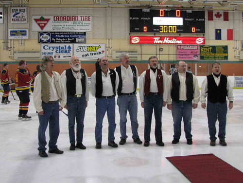 The Shantymen on ice: singing O Canada! at the Mariners Centre, Yarmouth