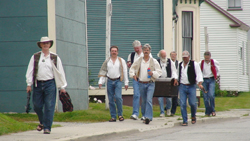 Surrounded by the Atlantic Ocean and walking among Yarmouth's grand homes that the 1800's shipping boom built, we developed empathy for the sailors' lives. We sing with a happy, free harmony and honour the sea shanty's traditional a cappella style. The Yarmouth Shantymen's performances and three CDs deliver shanties about the love of sweethearts and strong drink, hard shipboard life, fearsome ocean weathers, and of ports of call the world over. Our Music tab has samples. The Yarmouth Shantymen have been seduced by the ancestral music of these anonymous Mozarts of the sea, as ever was a sailor freshly come to port with a pocket full of money, walking down a street with well stocked taverns and fast company.